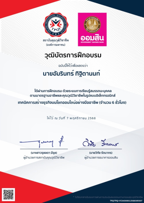 วุฒิบัตรทั้งหมดของ นายอัมรินทร์ ทิฐิตานนท์