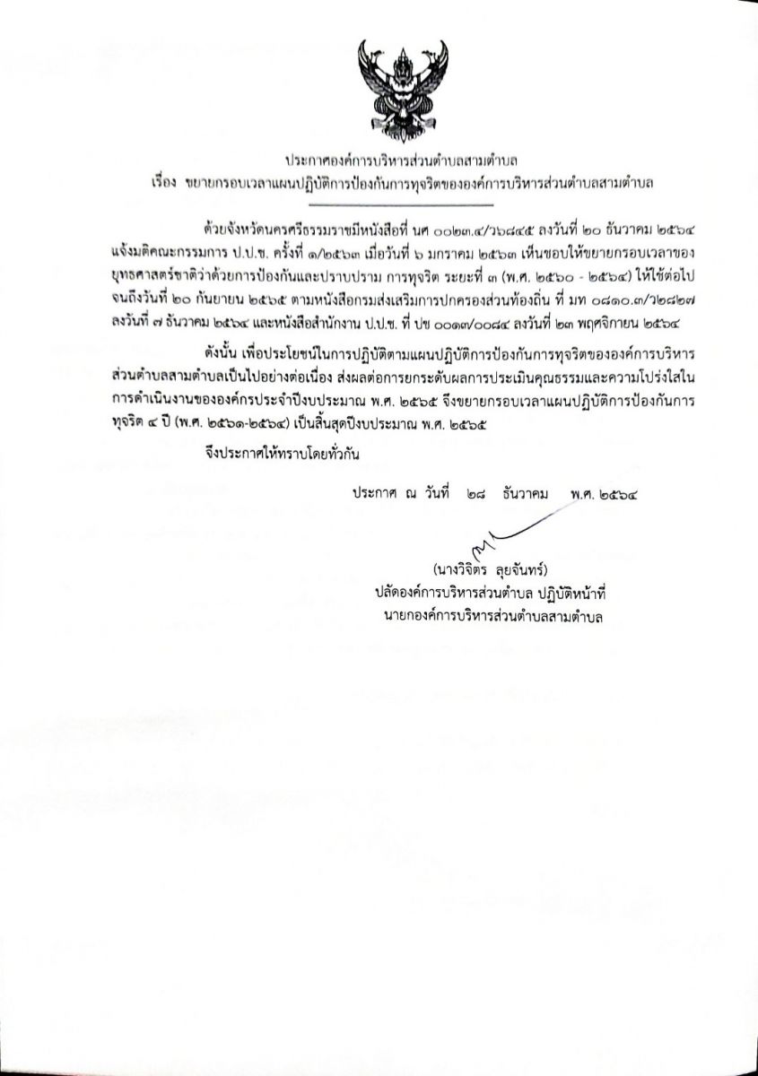 ขยายกรอบเวลาแผนปฏิบัติการป้องกันการทุจริตขององค์การบริหารส่วนตำบลสามตำบล 28 กันยายน 25647 กุมภาพันธ์ 2022ผู้ดูแลระบบ อบต.สามตำบลข่าวประชาสัมพันธ์ Post Views: 116 FacebookFacebookXXLINELine