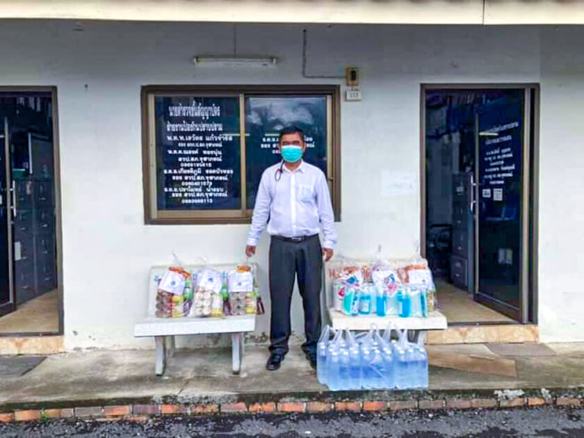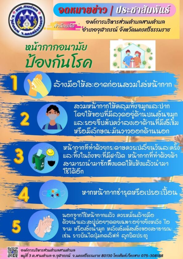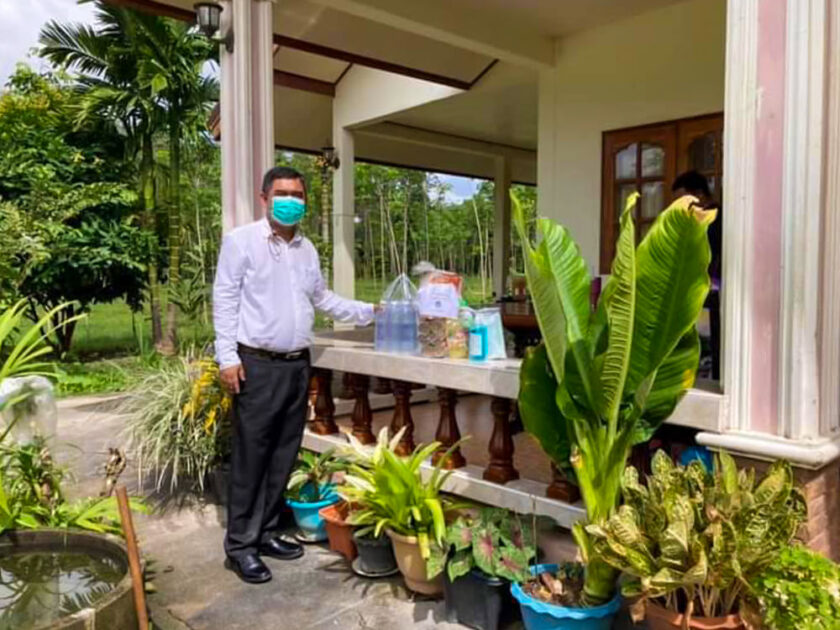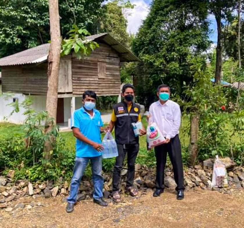 และมอบชุดถุงยังชีพ หน้ากากอนามัย เจลแอลกอฮอล์ หมู่ที่ 2,4,6 ตำบลสามตำบล อำเภอจุฬาภรณ์ จังหวัดนครศรีธรรมราช ให้กับผู้กักตัว ในสถานการณ์การแพร่ระบาดเชื้อไวรัสโควิด-19