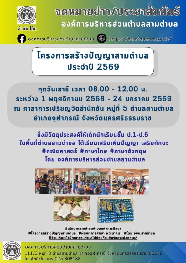 ประชาสัมพันธ์ / โครงการ“สร้างปัญญาสามตำบลตำบล” ประจำปี 2569