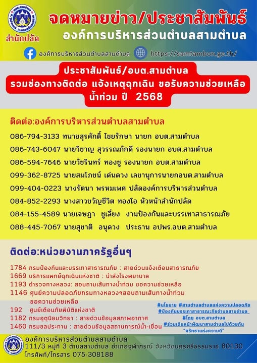 ติดต่อสอบถาม อบต.สามตำบล