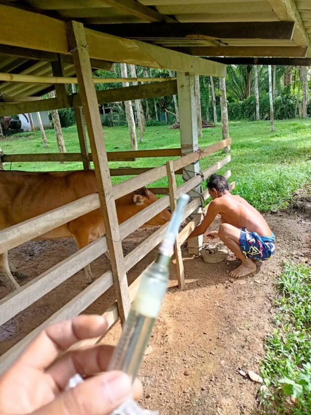 วันที่ 28 พฤศจิกายน 2566 ทนายสุรศักดิ์ ไชยรักษา นายกองค์การบริหารส่วนตำบลสามตำบล มอบหมายพนักงานปศุสัตว์ อบต.สามตำบล ลงพื้นที่บริการฉีดวัคซีนป้องกันโรคปาก เท้า เปื่อยให้กับเกษตรกรเลี้ยงโคในพื้นที่บ้านวคอพรุ หมู่ที่ 2 ตำบลสามตำบล อำเภอจุฬาภรณ์ จังหวัดนครศรีธรรมราช #บริการฟรี