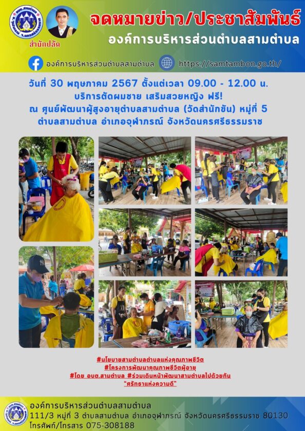 วันที่ 30 พฤษภาคม 2567 ตั้งแต่เวลา 09.00 – 12.00 น. บริการตัดผมชาย เสริมสวยหญิง ฟรี!
