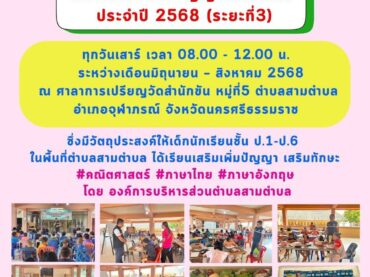 วันที่ 16 กันยายน 2568 เวลา 16.00 น. ทนายสุรศักดิ์ ไชยรักษา นายกองค์การบริหารส่วนตำบลสามตำบลมอบหมายพนักงาน อบต.สามตำบล และคณะกรรมการบริหารจัดการขยะต้นทางตำบลสามตำบล ลงพื้นรณรงค์โครงการ”ถือกร้าไปหลาด ไม่เอาหยากกลับบ้าน”