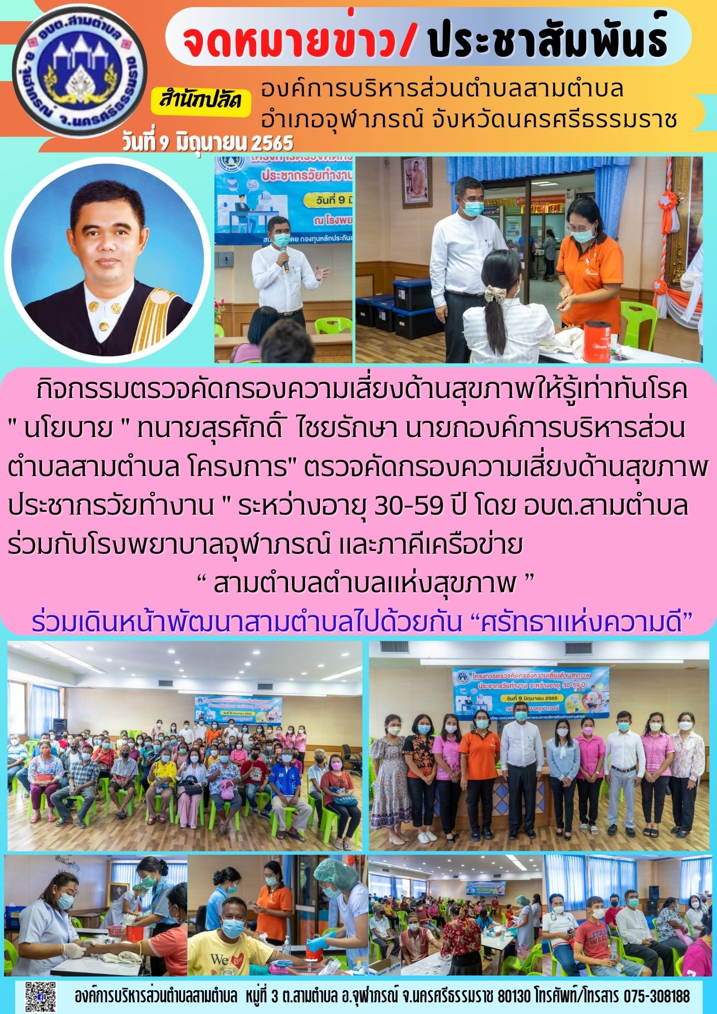 โครงการตรวจคัดกรองความเสี่ยงด้านสุขภาพประชากรวัยทำงาน 10 มิถุนายน 2565อบต. สามตำบล-02กิจกรรมเด่น อบต.สามตำบลห่วงใยใส่ใจสุขภาพคนวัยทำงาน ทนายสุรศักดิ์ ไช […]