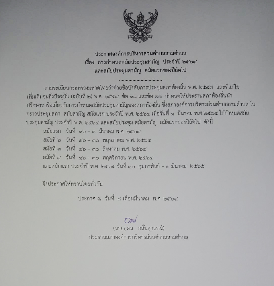 เรื่อง การกำหนดสมัยประชุมสามัญ ประจำปี 2564 8 พฤษภาคม 256427 พฤษภาคม 2022อบต. สามตำบล-02ข่าวประชาสัมพันธ์