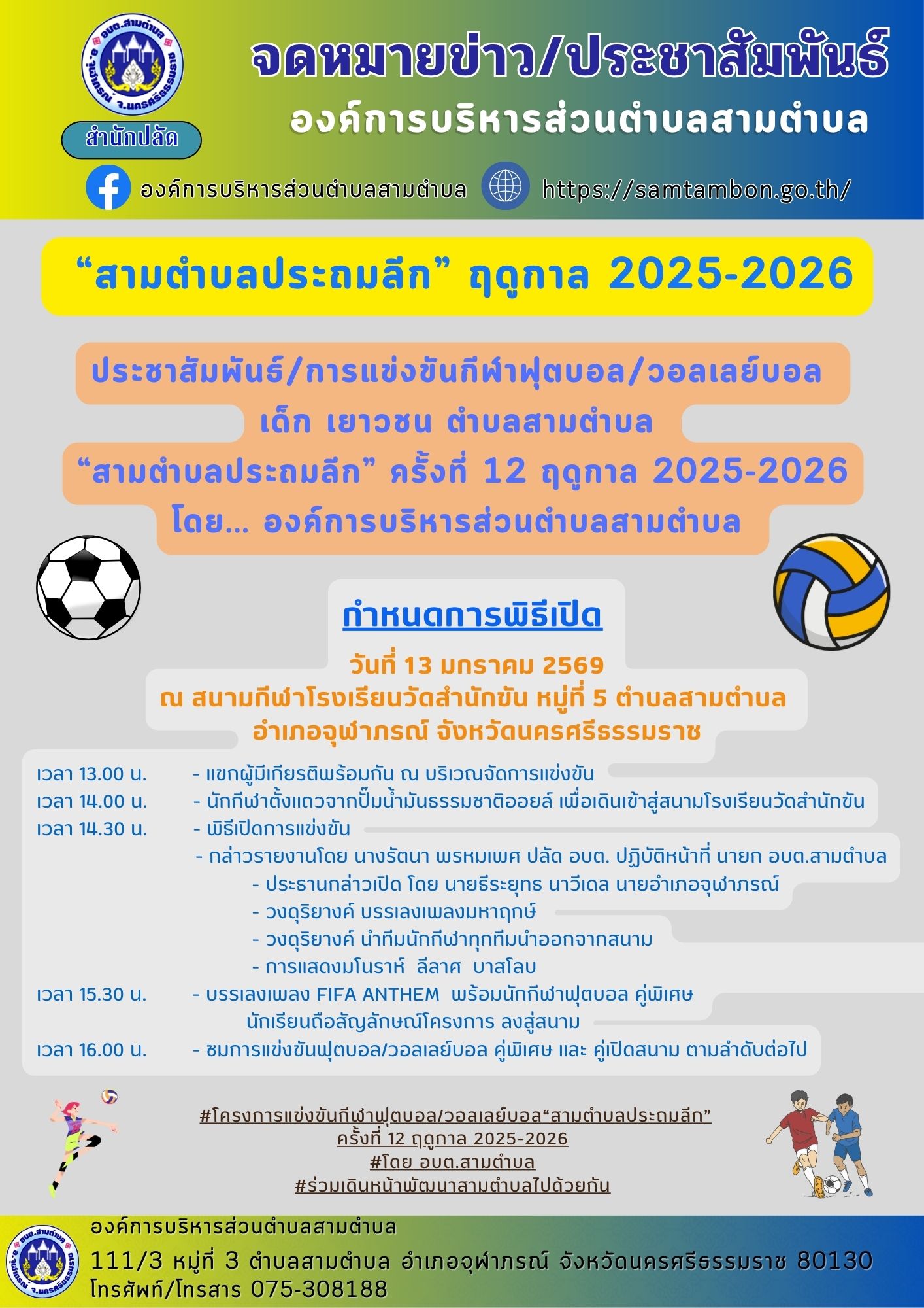 วันที่ 8 มกราคม 2569 เวลา 15.00 น. องค์การบริหารส่วนตำบลสามตำบล จัดกิจกรรม BIG DAY รณรงค์เชิญชวนประชาชนใช้สิทธิเลือกตั้ง