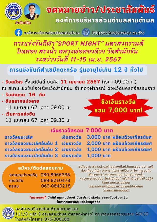วันที่ 29 กรกฎาคม 2568 เวลา 9.30 น. ทนายสุรศักดิ์ ไชยรักษา นายกองค์การบริหารส่วนตำบลสามตำบลประชุมสภาองค์การบริหารส่วนตำบลสามตำบล พิจารณาร่างข้อบัญญัติงบประมาณรายจ่ายประจำปี 2569 ณ ห้องประชุมสภาองค์การบริหารส่วนตำบลสามตำบล หมู่ที่ 3 ตำบลสามตำบล อำเภอจุฬาภรณ์ จังหวัดนครศรีธรรมราช