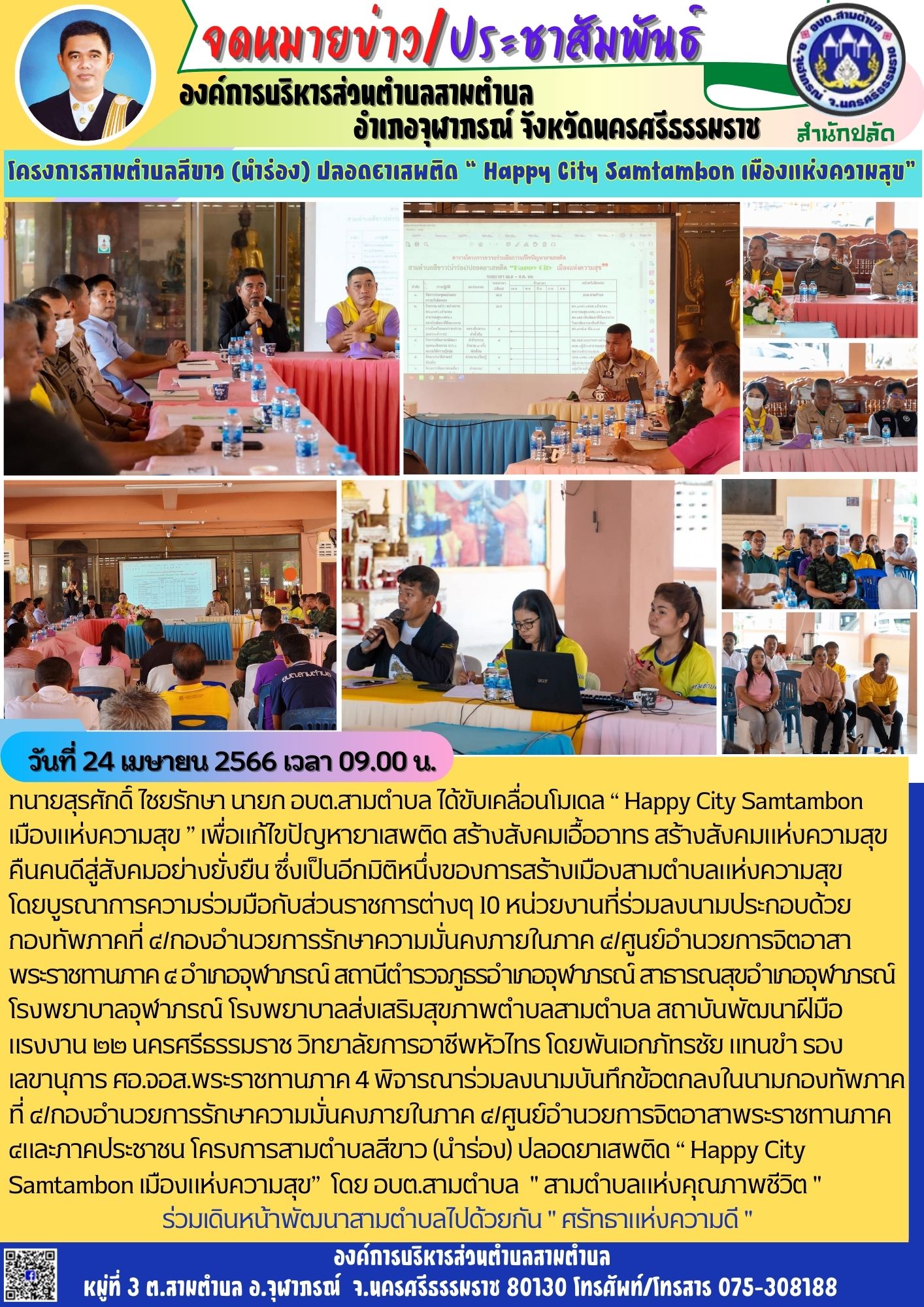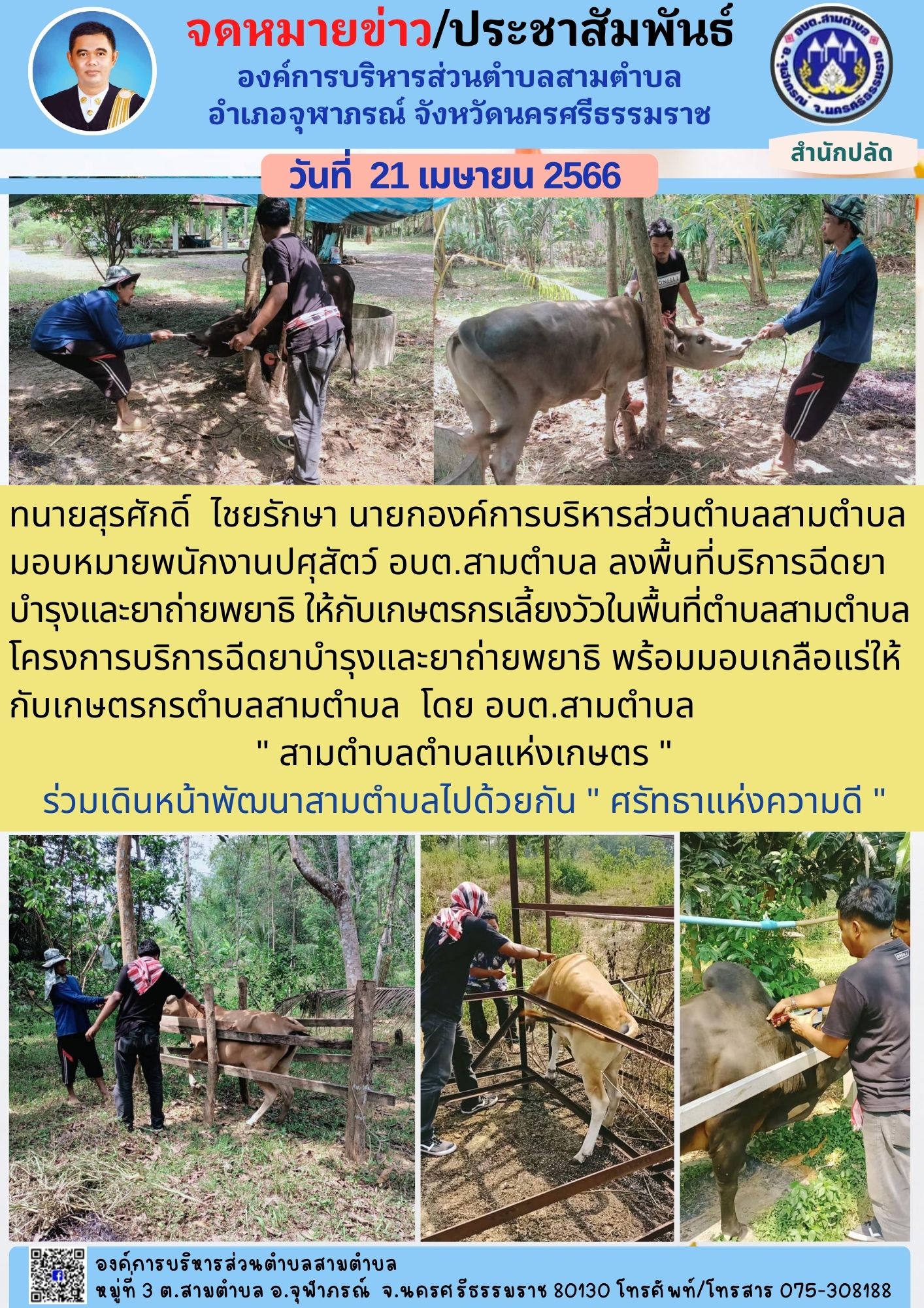 วันที่ 18 พฤศจิกายน 2566 เวลา 07.00 น. ทนายสุรศักดิ์ ไชยรักษา นายกองค์การบริหารส่วนตำบลสามตำบล