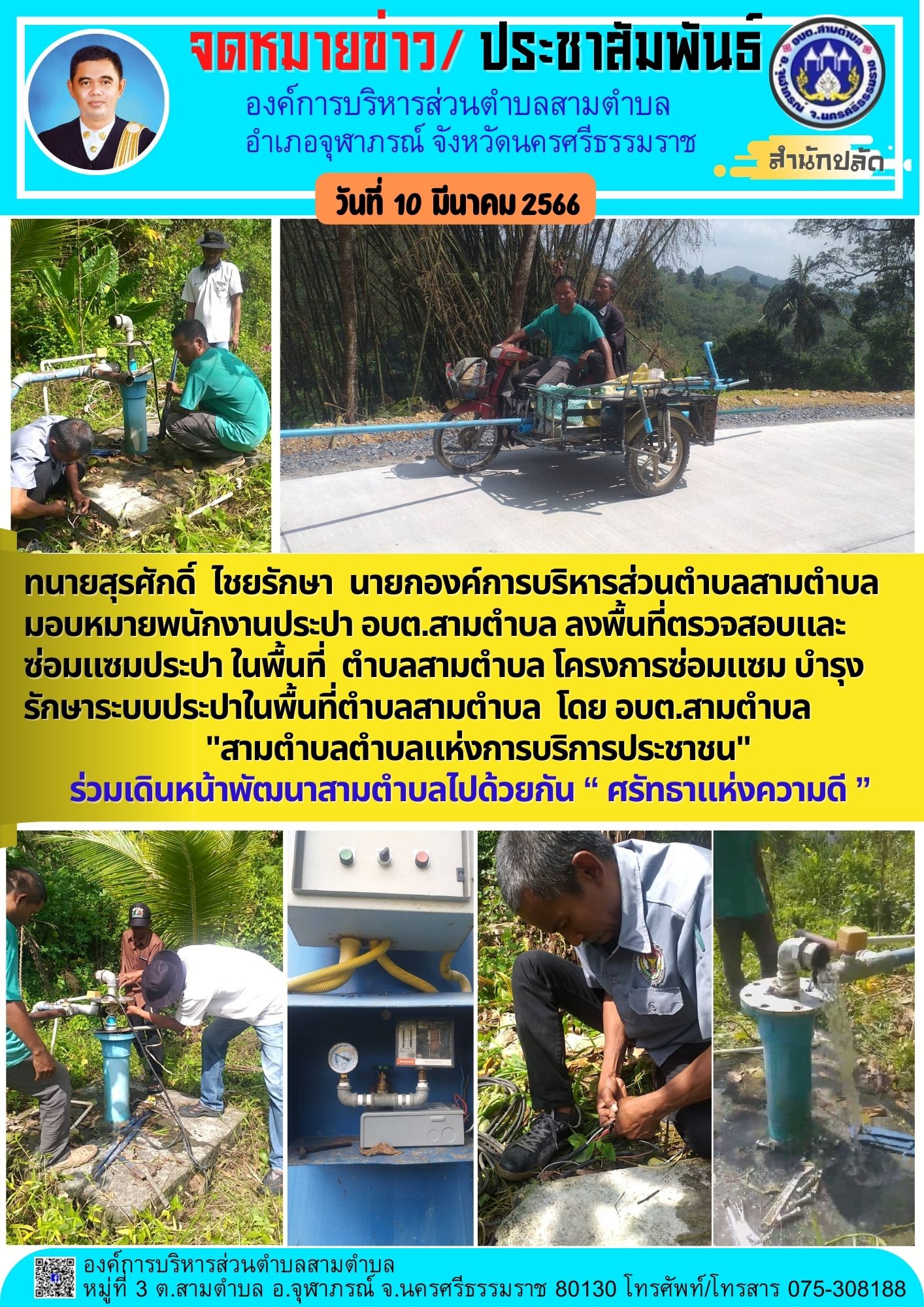 ยกเลิกประกาศผู้ชนะ จ้างเหมาซ่อมแซมปั๊มน้ำระบบประปาหมู่บ้าน บ้านคอพรุ (บริเวณสระน้ำ) หมู่ที่ 2 ตำบลสามตำบล โดยวิธีเฉพาะเจาะจง